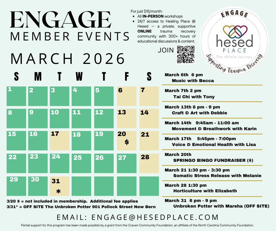 Where: Hesed Place Journey Center 2619 Trent Road, New Bern